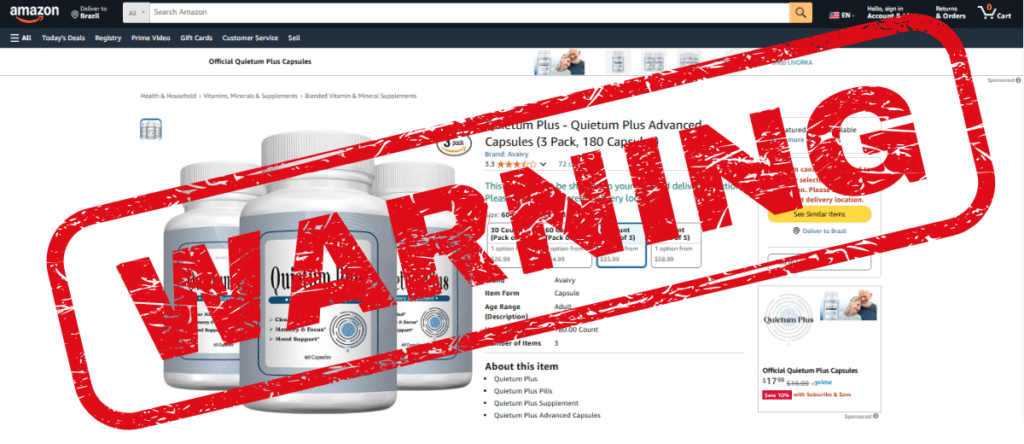 We strongly advise against ordering Quietum Plus from Amazon, Walmart, eBay or Walgreens, as these sources often sell fake versions with entirely different ingredients, which can be very dangerous.